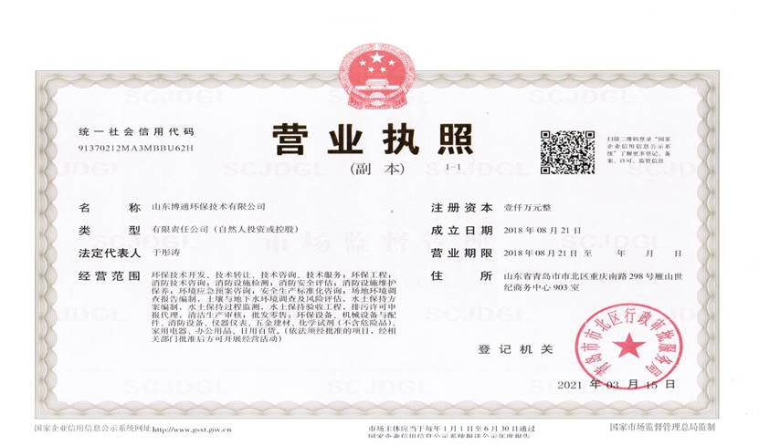山東博通環(huán)保技術(shù)有限公司是一家專(zhuān)業(yè)從事環(huán)保、安全、消防的多元化技術(shù)服務(wù)公司,公司致力于打造專(zhuān)業(yè)的技術(shù)服務(wù)團(tuán)隊(duì),立足青島,輻射山東,服務(wù)范圍涵蓋:環(huán)保技術(shù)開(kāi)發(fā)、技術(shù)轉(zhuǎn)讓、技術(shù)咨詢(xún)、技術(shù)服務(wù);環(huán)保工程;消防技術(shù)咨詢(xún);消防設(shè)施檢測(cè);消防安全評(píng)估;消防設(shè)施維護(hù)保養(yǎng);環(huán)境應(yīng)急預(yù)案咨詢(xún);安全生產(chǎn)標(biāo)準(zhǔn)化咨詢(xún);場(chǎng)地環(huán)境調(diào)查報(bào)告編制,土壤與地下水環(huán)境調(diào)查及風(fēng)險(xiǎn)評(píng)估,水土保持方案編制,水土保持過(guò)程監(jiān)測(cè),水土保持驗(yàn)收工程,排污許可申報(bào)代理,清潔生產(chǎn)審核;批發(fā)零售:環(huán)保設(shè)備、機(jī)械設(shè)備與配件、消防設(shè)備、儀器儀表、五金建材、化學(xué)試劑(不含危險(xiǎn)品)。公司具有“建設(shè)手續(xù)一站式辦理,安環(huán)問(wèn)題一條龍解決”的獨(dú)特優(yōu)勢(shì),可為客戶(hù)提供高效、優(yōu)質(zhì)的安全、環(huán)保、消防管家技術(shù)服務(wù)。
